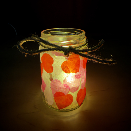 Celebrate Valentine's Day by creating heart-covered luminaries with this month's Take & Make kit for adults (age 18+).